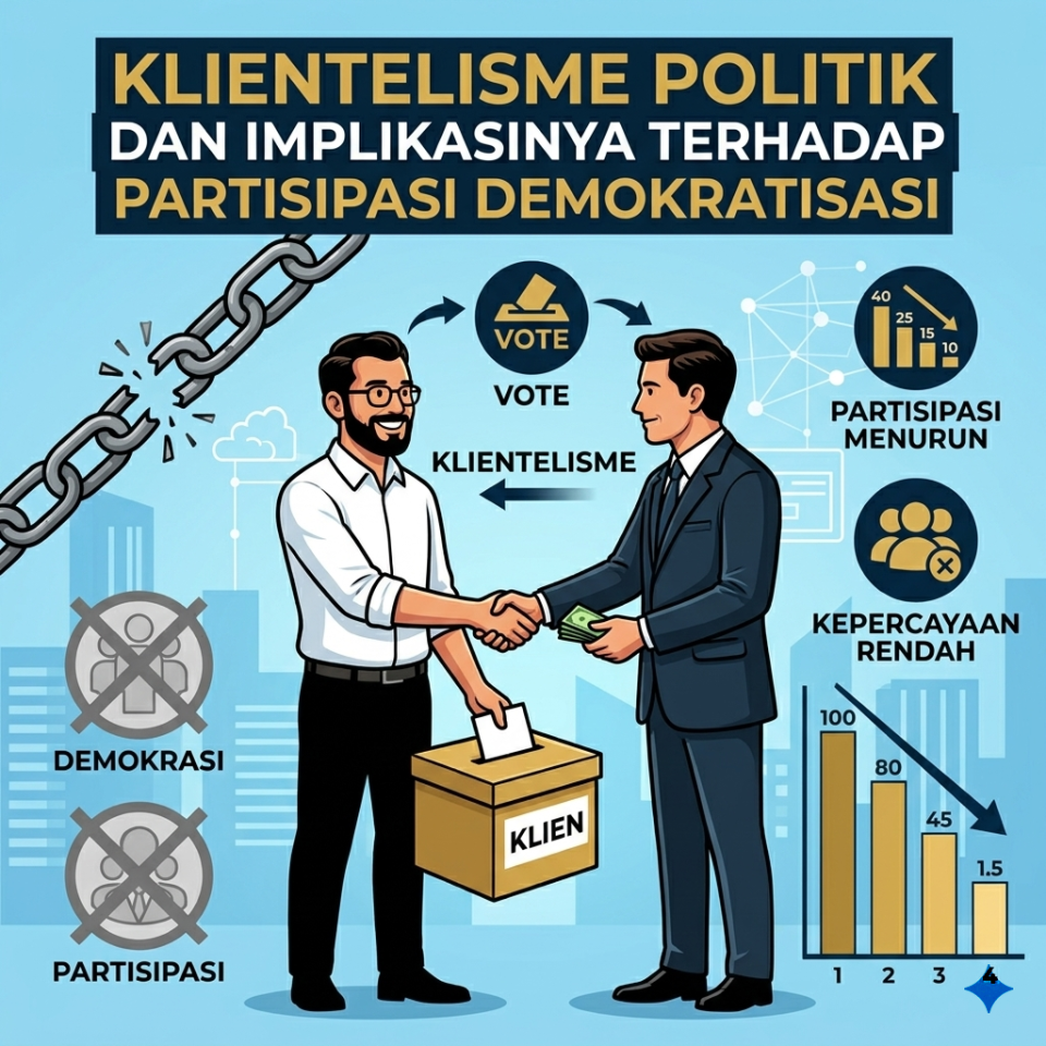 Klientelisme menciptakan ketergantungan warga pada aktor politik tertentu, yang mengurangi kemampuan masyarakat menuntut akuntabilitas dan transparansi.